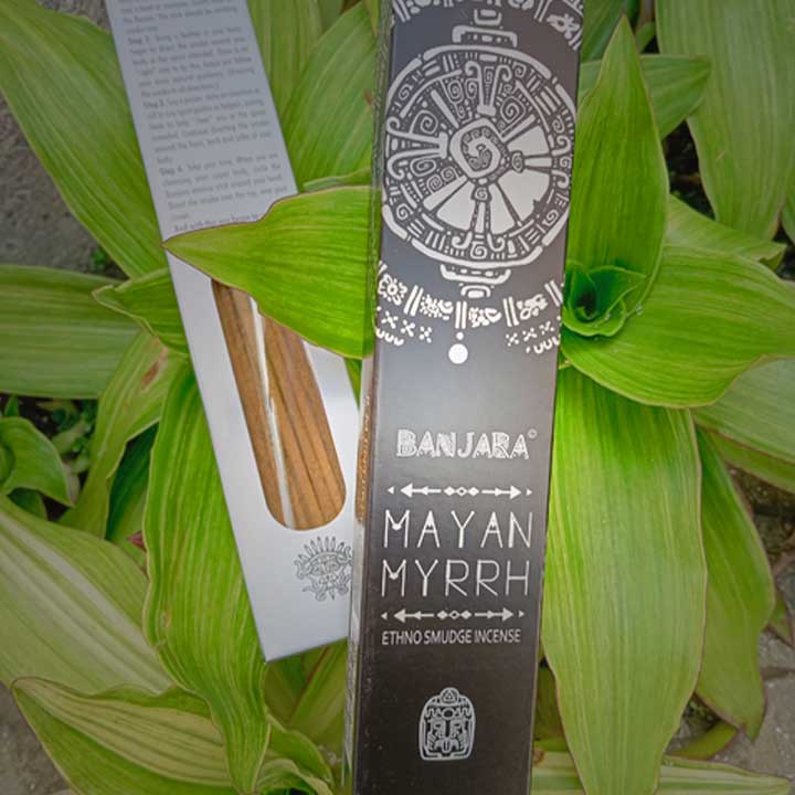 Com resina de mirra, óleos essenciais e ervas meditativas.